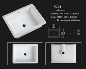 Rectangle Under-mount Undercounter Basin Bathroom Sink Gloss White Ceramic Sink-FD18