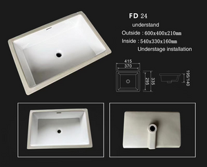 Rectangle Under-mount Undercounter Basin Bathroom Sink Gloss White Ceramic Sink-FD24